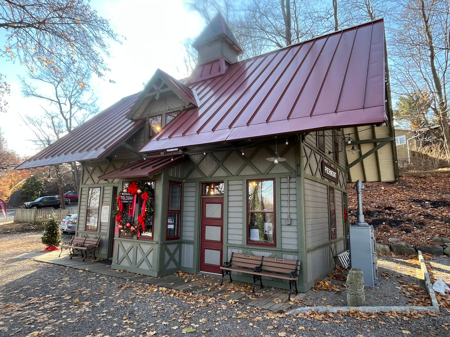 I’ll leave you with this photo of an 1873 railroad station in Piermont, N.Y., I hiked to along a rail trail with some friends. The Piermont Historical Society opens it on certain Sundays. On this particular Sunday, it was decked out for the holidays.